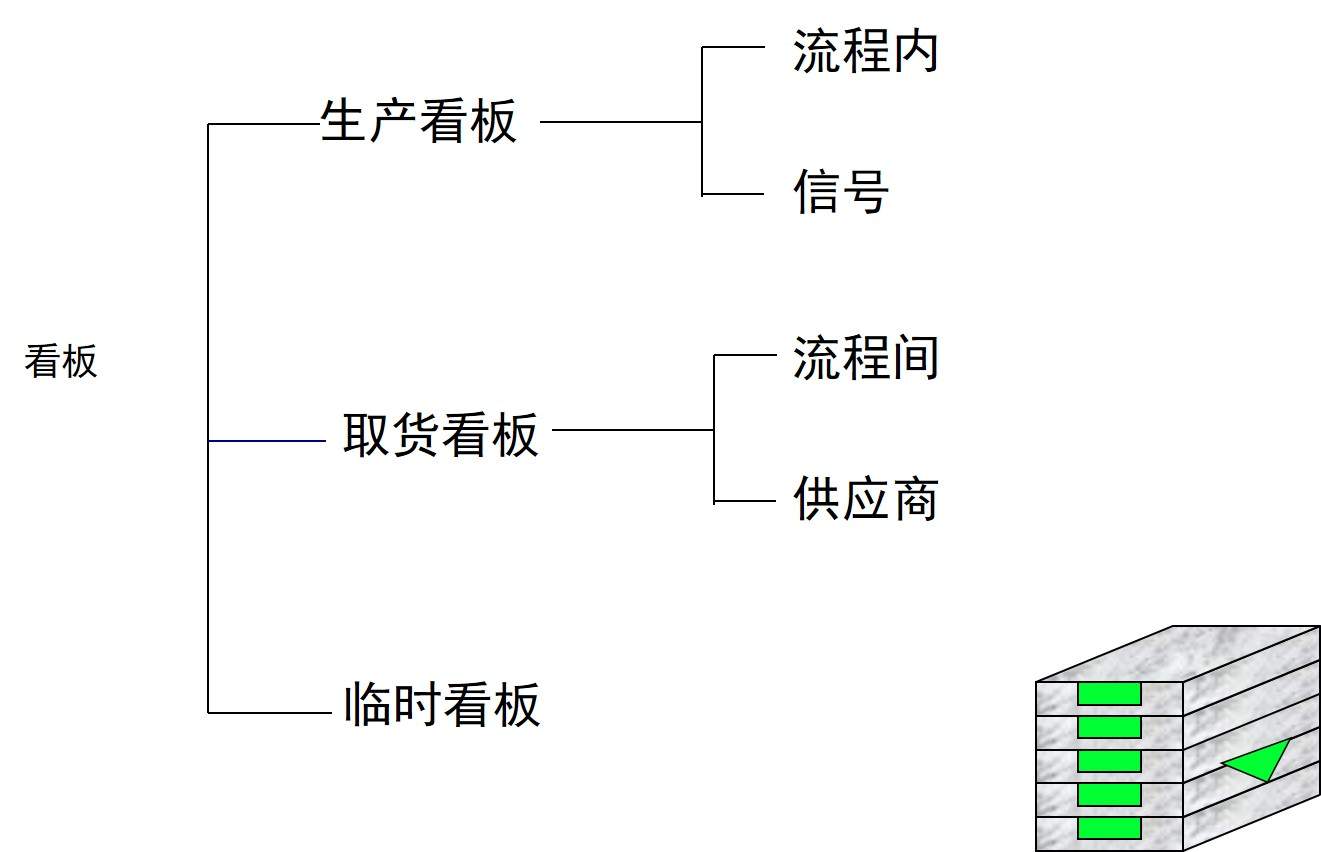 拉動(dòng)看板取代了傳統(tǒng)的制定周計(jì)劃或者日計(jì)劃后的控制工作。傳統(tǒng)主生產(chǎn)計(jì)劃由計(jì)劃職能部門做出,并用文字的形式發(fā)出,然后依靠調(diào)度進(jìn)行調(diào)整。在看板方式下,計(jì)劃由作業(yè)員根據(jù)現(xiàn)場(chǎng)實(shí)際情況調(diào)整,并且采用目視信號(hào)代替了文字形式的生產(chǎn)指令。