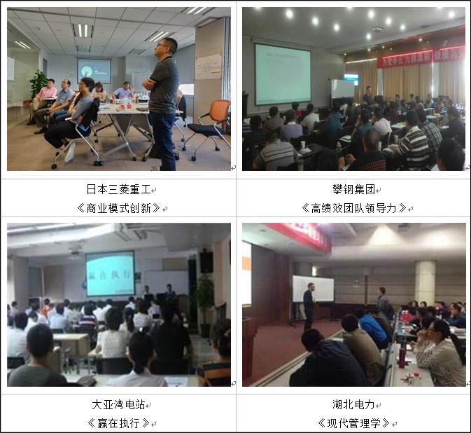第二大類是企業(yè)內(nèi)訓(xùn)課,已服務(wù)過的一者有外企,如北京美資企業(yè)巴威公司、天津日資企業(yè)大冢公司及上海日資企業(yè)三菱重工和日立集團(tuán)、青島韓資企業(yè)泰光公司、珠海德資企業(yè)TDK等等。再者有國企,如移動、聯(lián)通、電信,國家電網(wǎng),中國人壽保險(xiǎn)、中國太平洋保險(xiǎn),中石油,中國農(nóng)業(yè)銀行、中國建設(shè)銀行,重慶、貴陽等多地農(nóng)商行,內(nèi)蒙古東勝煤礦、鄂爾多斯羊絨集團(tuán)、雪花啤酒、五糧液集團(tuán)等等。第三有民企,如復(fù)興、海爾、蒙牛、綠城、報(bào)喜鳥、林氏木業(yè)、奧克斯、良品鋪?zhàn)拥鹊龋?br />